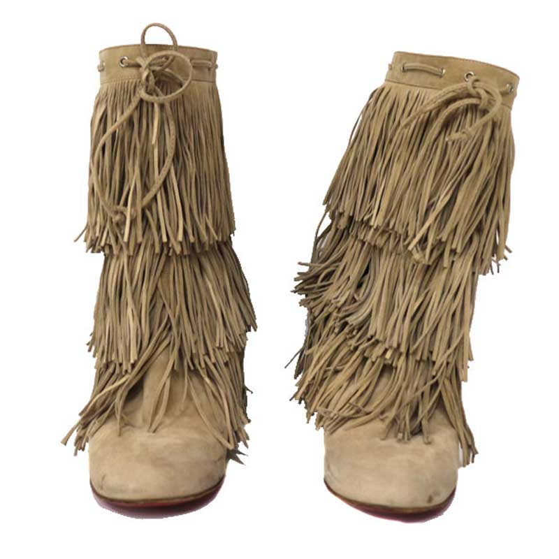 Christian Louboutin 【クリスチャンルブタン】 ショートブーツ フリンジ 表記サイズ:35 約22cm 靴 ウェッジソール ヒール:約10cm 【中古】 USED-6 質屋 かんてい局小牧店 c19-1909