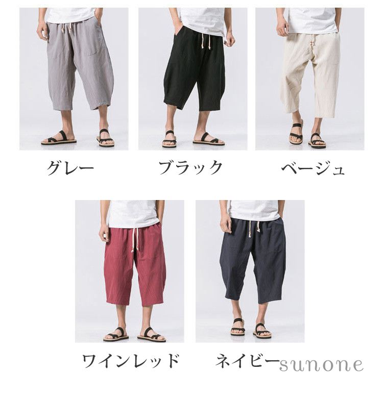 メンズ パンツ 夏 ハロンパンツ メンズ チノパン 七分丈 薄手 カジュアル 大きいサイズ ゆったり ポケット付き ひもで調節 無地 リラックス 春夏 カジュアルパンツ サルエルパンツ