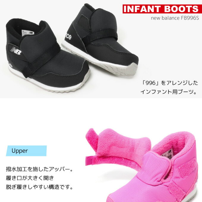 メーカー希望小売価格はメーカーサイトに基づいて掲載しています 商品名 ニューバランス FB996S キッズ ベビー ブーツ 防寒 New Balance ナイロン 男の子 女の子 子供靴 キッズブーツ スノーブーツ ギフト 贈り物 おしゃれ かわいい 商品特徴 圧倒的な人気を誇る「996」をアレンジした人気のインファント用ブーツ「FB996S」。