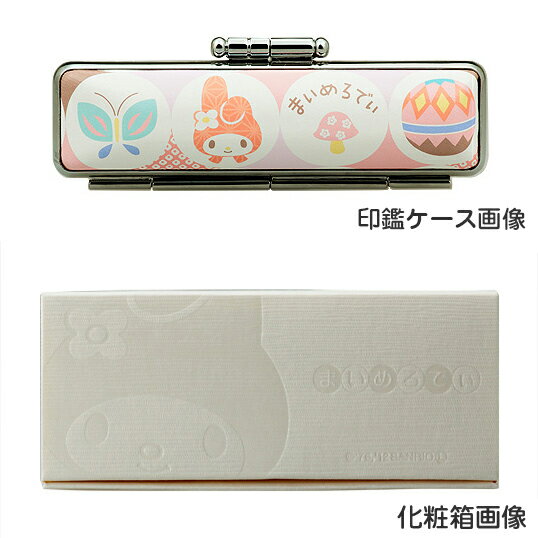印鑑サイズ 60×12.0mm 材質 ポリエステル系樹脂 印鑑ケース 92×27×20mm 化粧箱サイズ 約110×45mm とっても可愛い和柄デザインのマイメロディがプリントされた、印鑑とケースのセットです。