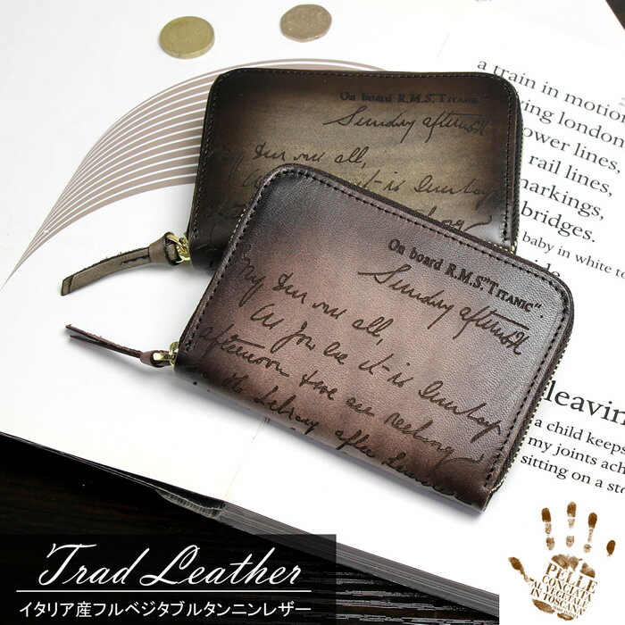 TRAD LEATHER 小銭入れ コインケース 財布 メンズ ブランド イタリアンレザー 本革 パティーヌ タイタニックレター レーザー彫刻 LP005F ギフト ブラウン グリージョ