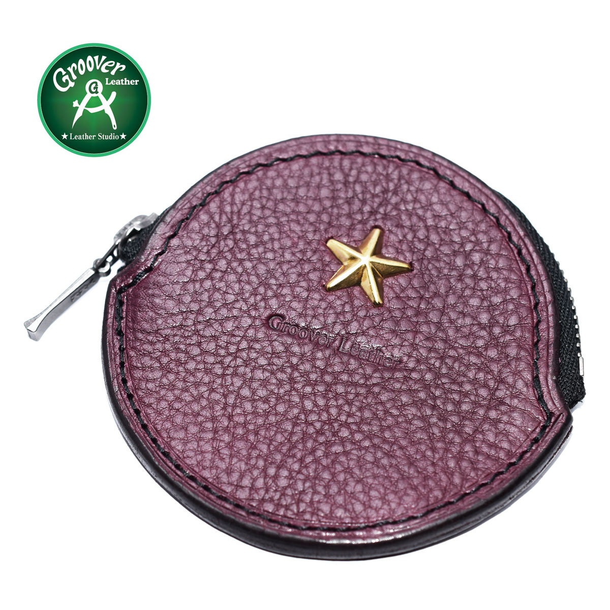 【正規取扱店】コンパクトなサイズ≪Groover Leather/グルーバーレザー GDB-100-BRD 小銭入れ 星スタッズ付き丸型コインケース ボルドー≫レザー 牛革 日本製 牛皮 手作り メンズ 財布 本皮 本革 セカンドウォレット【メール便可】