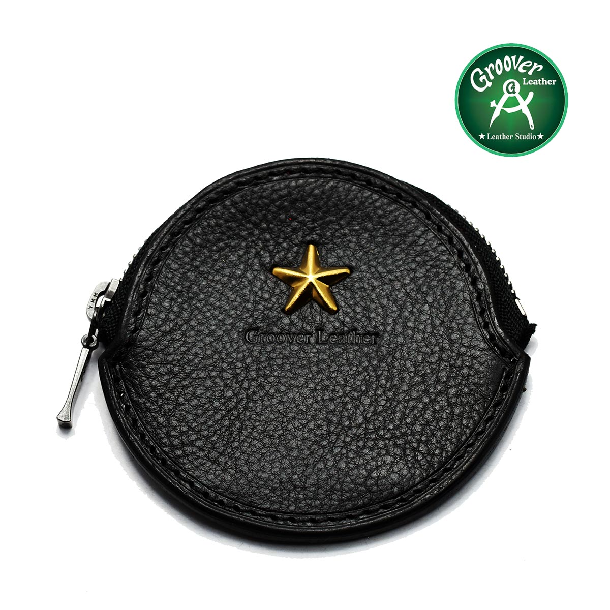 【正規取扱店】コンパクトなサイズ≪Groover Leather/グルーバーレザー GDB-100-BLK 小銭入れ 星スタッズ付き丸型コインケース ブラック≫レザー 牛革 日本製 牛皮 手作り メンズ 財布 本皮 本革 セカンドウォレット【メール便可】