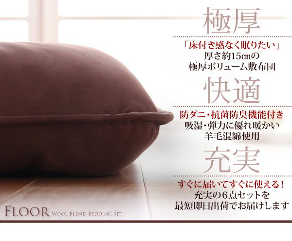 送料無料 ボリューム布団6点セット FLOOR フロア 羊毛混タイプ クイーン ふとんセット 冬用布団 クイーンサイズ 布団セット 040201755