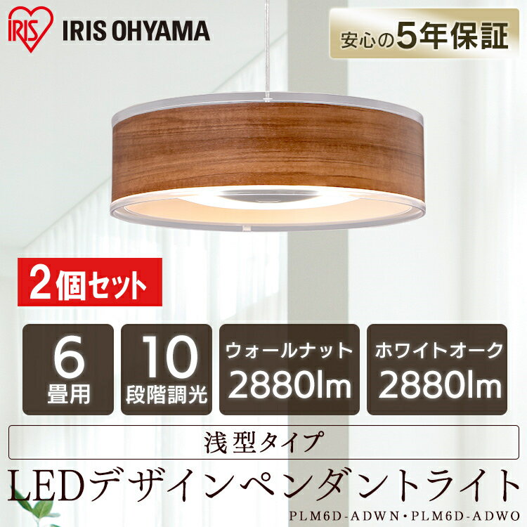 [2個セット]デザインペンダントライト 浅型 6畳 調光 PLM6D-ADWN・O 木目 木枠 送料無料 LEDペンダントライト メタルサーキット LEDシーリングライト LEDライト シーリングライト LED照明 LED 照明 アイリスオーヤマ